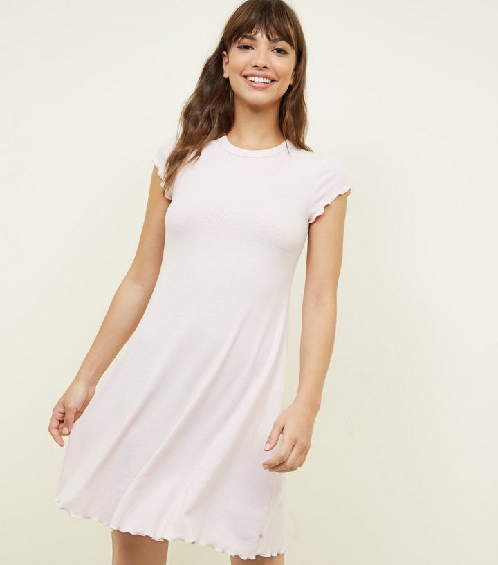 Ausgestelltes Geripptes Kleid In Zartrosa New Look
