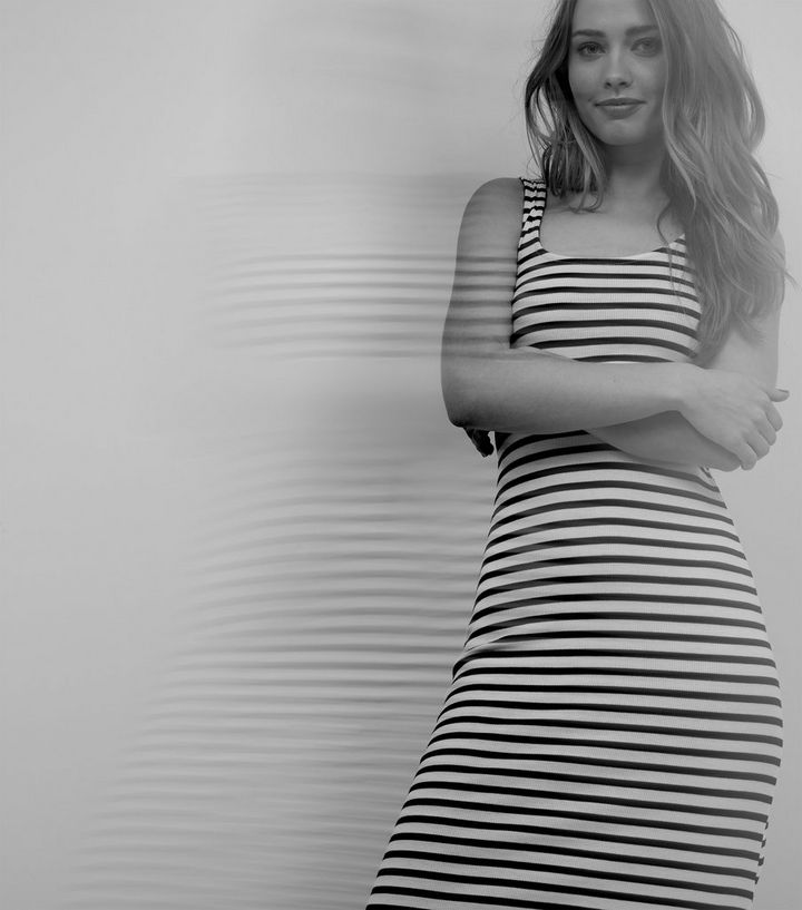 Weisses Geripptes Maxikleid Mit Streifen New Look