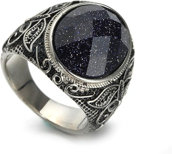 Aeici Ring Herren Biker Vintage Blumenmuster Ring Mit Stein Grosse 60 19 1 Silber Schwarz Amazon De Schmuck