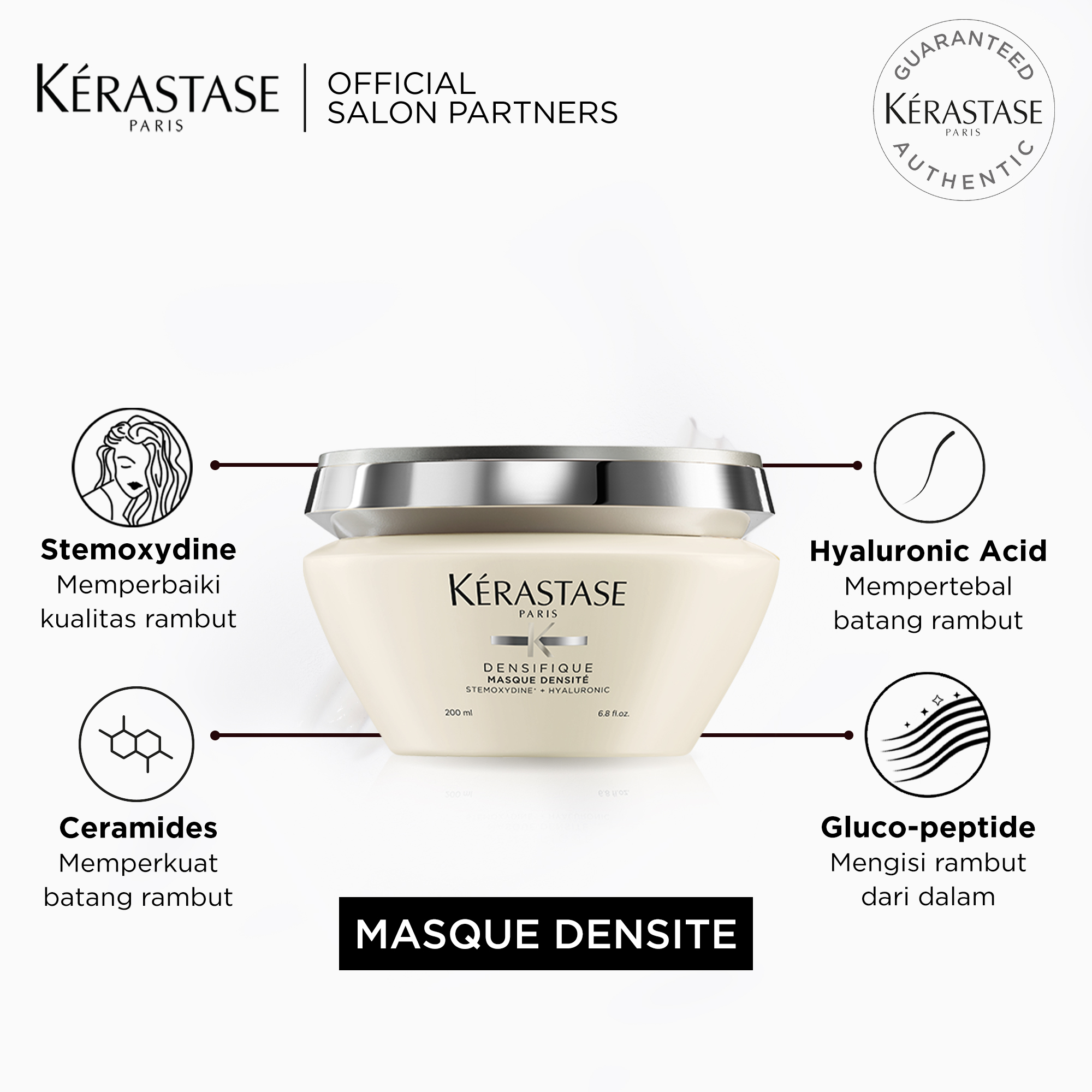 Baca juga 5 Resep Hair Mask Alami Buatan Sendiri untuk Merawat Rambut Agar Lebih Sehat 4 Kérastase Discipline Maskeratine Hair Mask Kalau ada budget lebih, Kérastase selalu bisa jadi tujuan Dengan kandungan MorphoKeratine, Softening Agents, dan Lipids, yang melapisi setiap helai rambut, hair mask ini sangat bagus untuk bikin rambut terlihat lebih “jatuh” dan lurus, sangat lembut dan. Kerastase Products Produk Kérastase Temukan Koleksi Kerastase Kombinasi unik antara Hyaluronic Acid dan ekstrak bunga Edelweiss mampu menutrisi rambut dari dalam serta kandungan pigmen Ultraviolet bekerja aktif mencegah kemunculan warna kuning sehingga warna rambut bleached kamu akan tahan lebih lama dan indah berkilau. How to Use Our Hair Mask for Frizzy Hair, Maskératine Step 1 Apply this deep conditioning hair mask to washed and towel dried hair from roots to ends Step 2 Massage into the hair fiber and spread on the scalp for greater root control Step 3 Leave our deep conditioning hair mask in for 5 minutes Step 4 Emulsify and rinse thoroughly out.