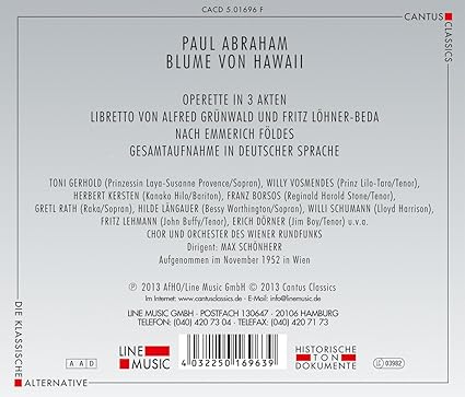 Paul Abraham Die Blume Von Hawaii The Flower Of Hawaii Operetta Amazon Com Music