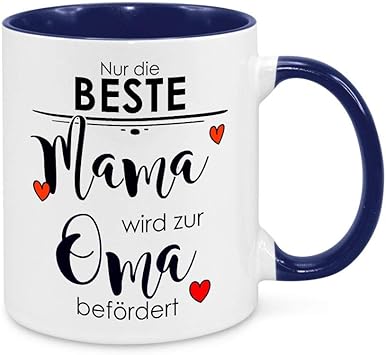 Mugaholic Nur Die Beste Mama Wird Zur Oma Befordert Farbig Ausgefullt Kobaltblau Tasse Mit Spruch Geburt Baby Nachwuchs Amazon De Kuche Haushalt