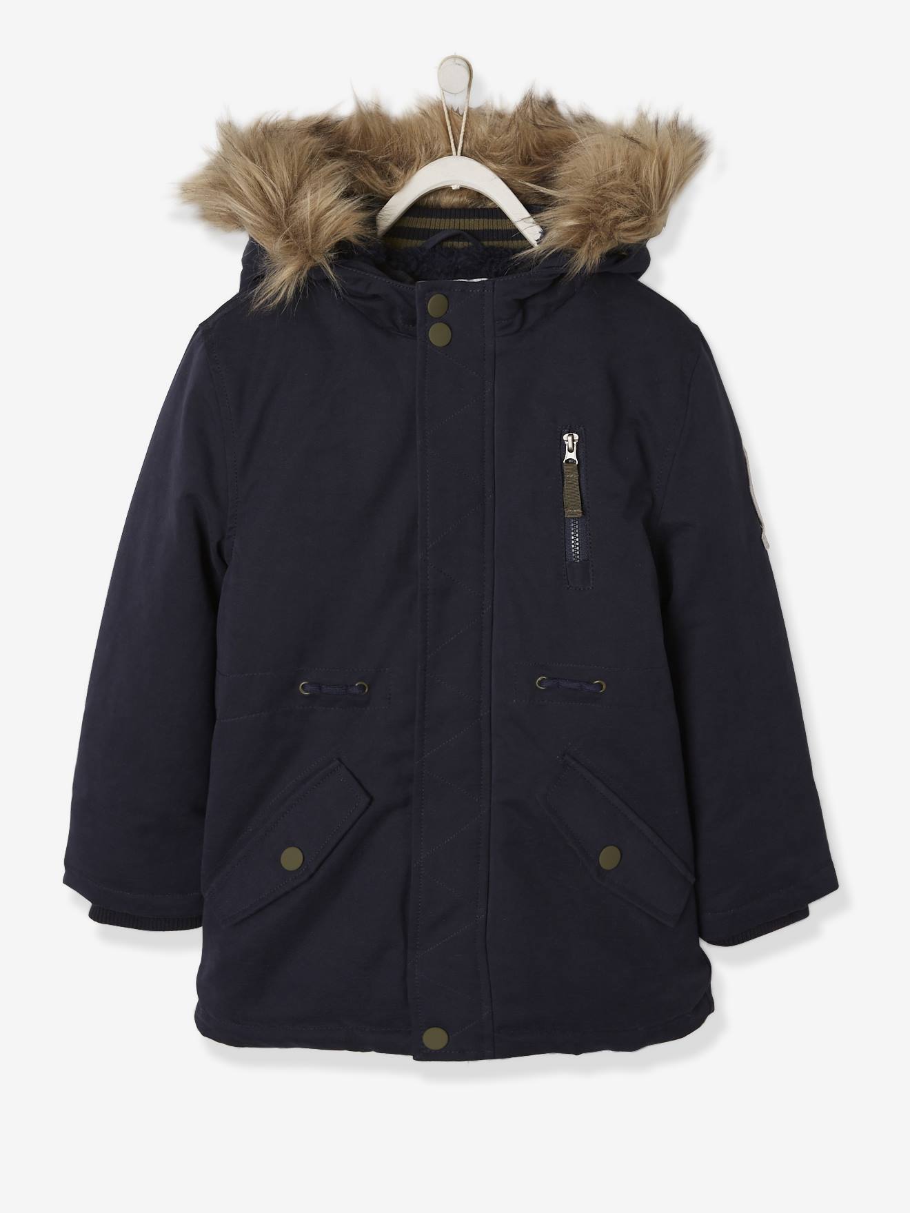 Vertbaudet Gefutterter Parka Fur Jungen In Nachtblau