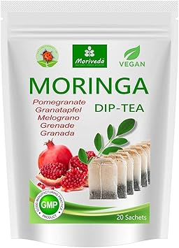 Moriveda Moringa Tee 100 Naturlich Vegan Wahlweise Moringa Blattmischung Apfel Zimt Granatapfel Ingwer Minze Qualitatsprodukt Beutel Moringa Granatapfel Amazon De Drogerie Korperpflege