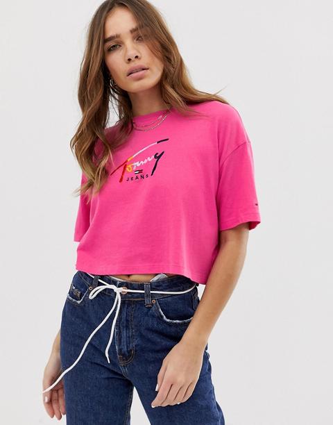 Tommy Jeans Kurz Geschnittenes T Shirt Mit Logoschriftzug In Regenbogenfarben Violett From Asos On 21 Buttons