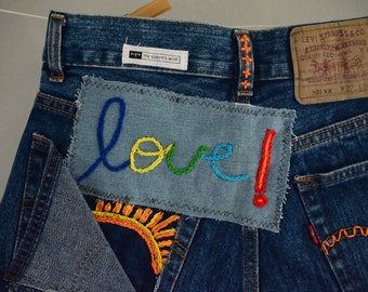 Jeans Cutoff Jeans Kurz Ausgefransten Stickerei Jeans Shorts Etsy