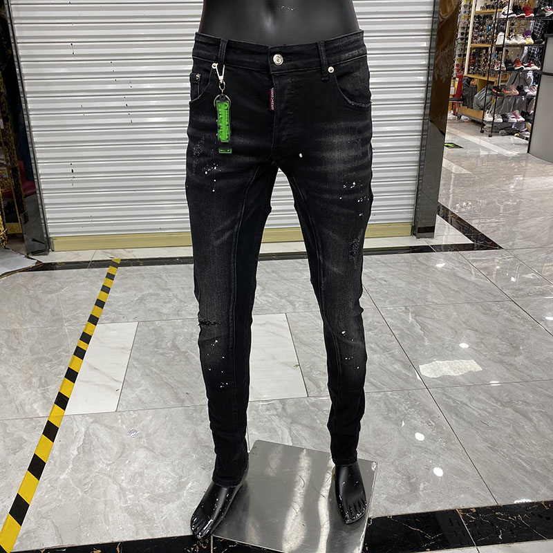 Schwarze Rohrenjeans Herren Kleidung 19 Herbst Denim Baumwolle Straight Hole Hose D Design Desig In Black Skinny Jeans Men Black Pants Casual Skinny Jeans Men