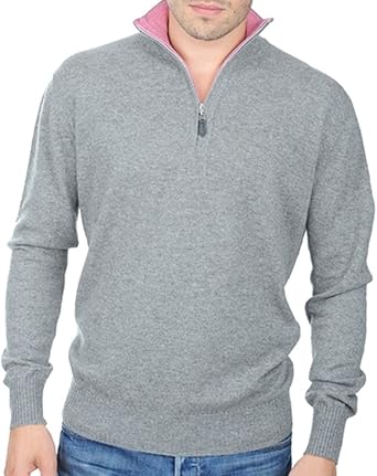 Balldiri 100 Cashmere Kaschmir Herren Pullover Troyer 2 Fadig Kontrastkragen Grau Meliert Rosa Xxxl At Amazon Men S Clothing Store