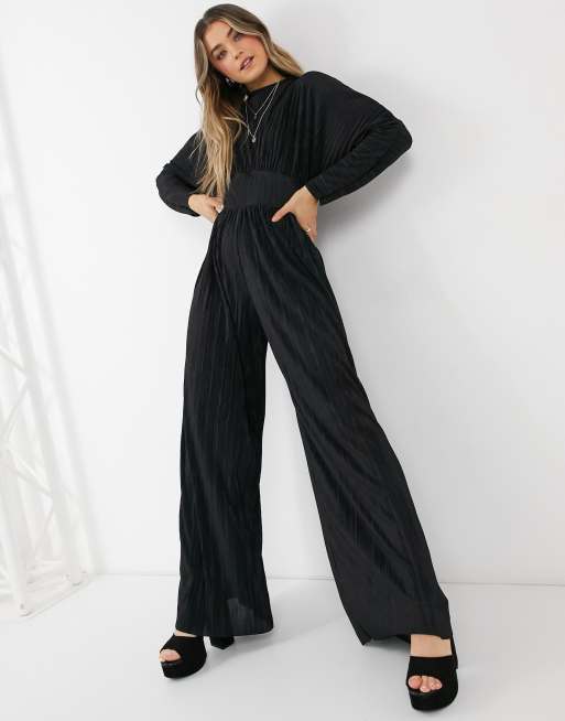 Evesham Nj Design Plissierter Jumpsuit Mit Hohem Kragen In Schwarz Evesham Nj
