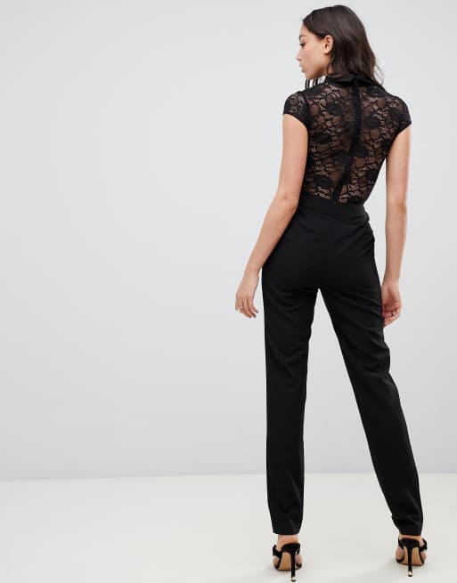 Asos Design Lace Top Jumpsuit With Collar Asos