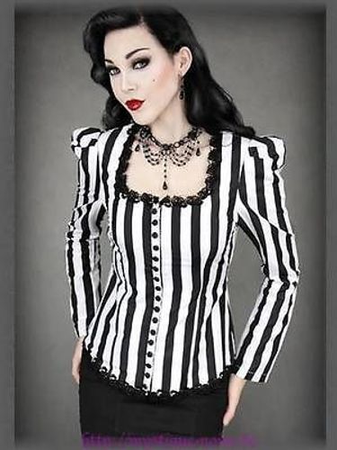 Gestreifte Bluse Viktorianisch Schwarz Weiss Gothic Steampunk Burlesque Victorian Gothic Outfits Gothic Jackets Alternative Fashion