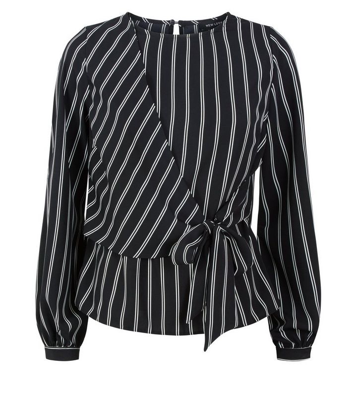 Schwarz Weiss Gestreifte Bluse Mit Bindegurtel New Look