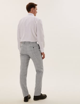 Herren Kariert Hose Slim Fit Weich Stretch Smart Freizeit Buro Kleid Hose Ebay