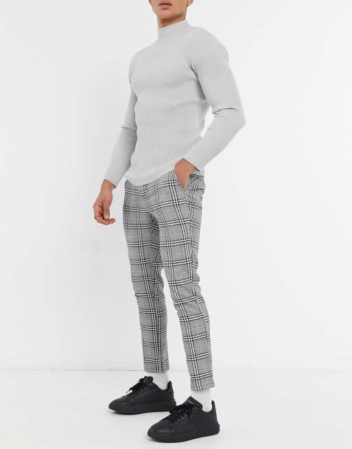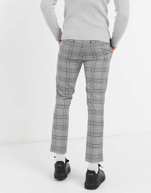 Schmal Geschnittene Schwarz Weiss Karierte Hose Boohoo