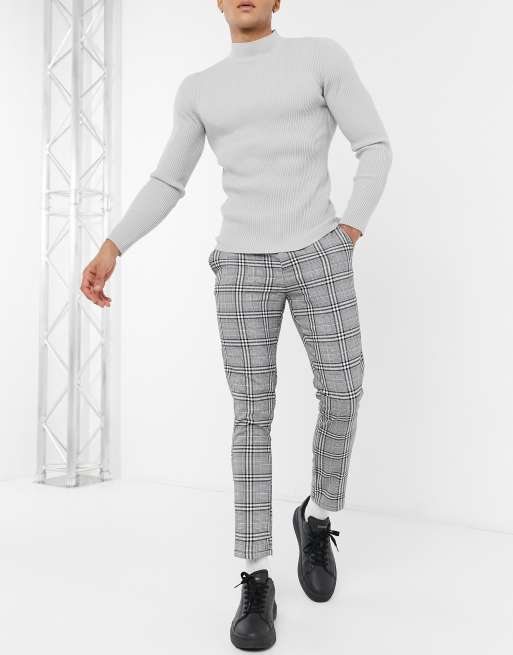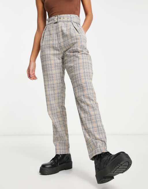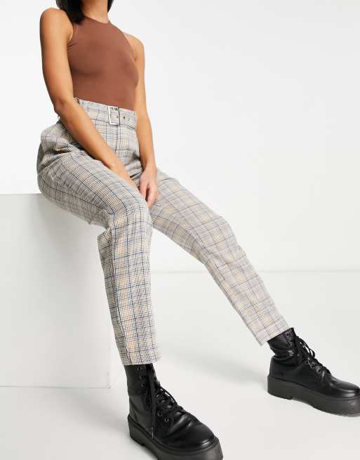 Asos Design Karierte Hose Mit Eng Zulaufendem Bein Und Schnallendetail Asos