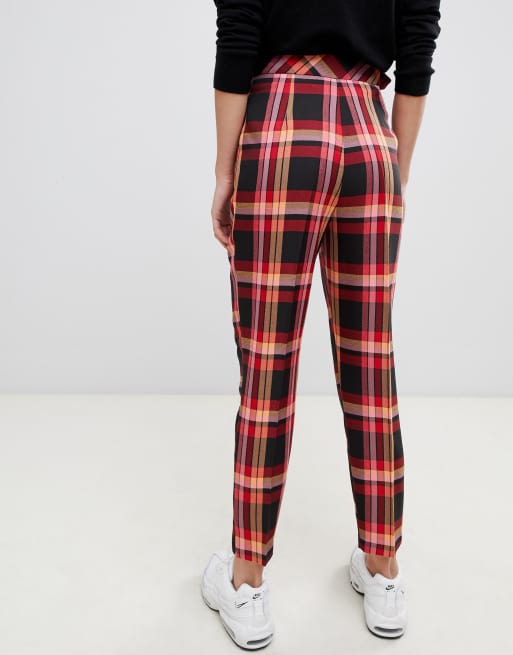 Heartbreak Eng Geschnittene Rot Karierte Hose Mit Gurtel Asos