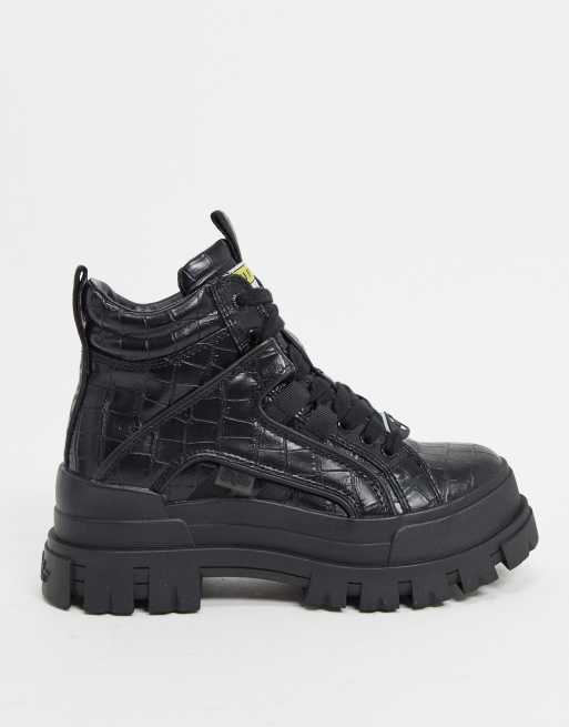Buffalo Aspha Vegane Schnurstiefel In Kroko Schwarz Mit Absatz Iebem Morelos