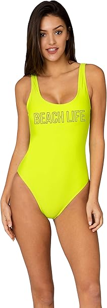 Yarsiman Damen Badeanzug Im Stil Der 90er Und 80er Jahre Mit Spruchdruck Uberkreuzter Rucken Einteiliger Badeanzug Mit Hohem Bein Bademode Mit Retro Tragern Amazon De Bekleidung