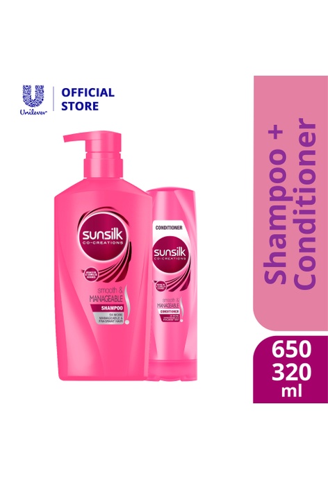 Sunsilk CoCreations Smooth&Manageable Shampoo (180 ML) pink exp 22 Authentic $999 Sunsilk cocreation hair shampoo conditioner smooth manageable straight expert. 1 Use after your shampoo, on wet rinsed hair 2 Apply a coinsized amount of conditioner Apply evenly over the hair, especially on the tips Leave the conditioner in for a minute 3 Rinse with water until the conditioner washes away Best results when used with Sunsilk Hairfall Solution Shampoo. 3 Rinse with running water till all shampoo is washed off Best results when followed up with the use of Sunsilk Long & Healthy conditioner The conditioner comes with revolutionary conditioner technology for oh so manageable hair!.