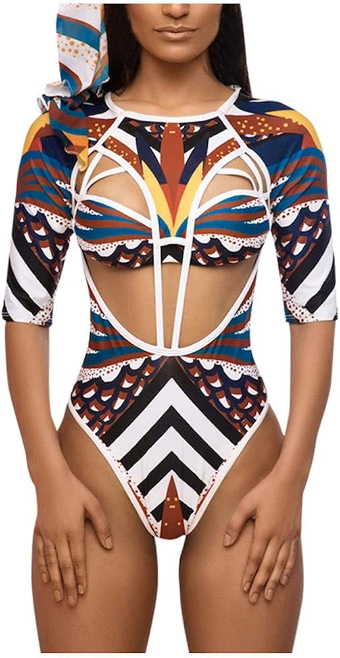 Aiserkly Urlaubskostume Einteiler Bademode Strandbikini Damen Afrikanischen Druck Einteilige Badebekleidung Push Up Gepolsterte Bh Langarm Badeanzug Beachwear X Kaffee S Amazon De Bekleidung