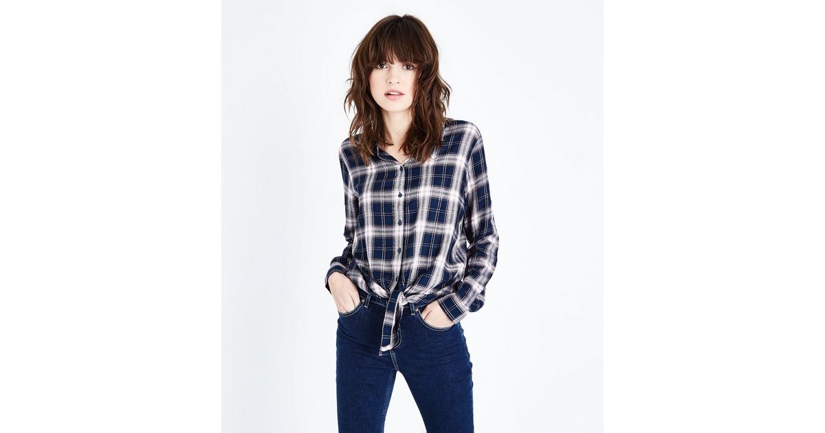 Jdy Blau Kariertes Hemd Mit Schnurung Vorne New Look