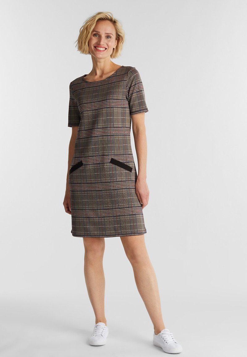 Esprit Mit Glencheck Muster Jerseykleid Camel Zalando De