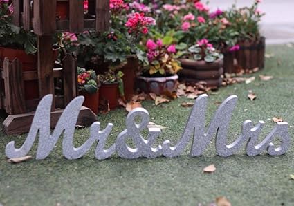 Amazon De Amajoy Gross Vintage Silber Glitzer Mr Mrs Holz Buchstaben Holz Zeichen Fur Hochzeit