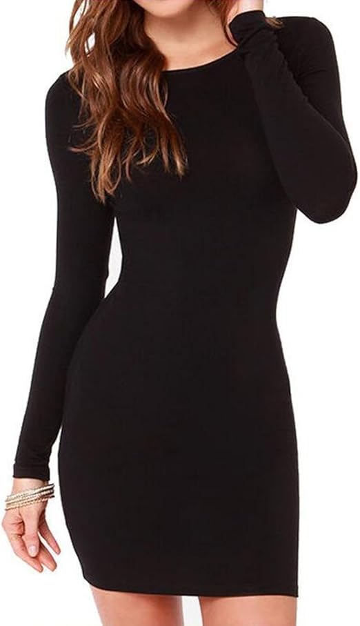 Schwarzes Rundhals Langarm Bodycon Enges Mode Longpulli Minikleid Partykleid Cocktailkleid Schwarzes Kleid Mit Armeln Langarm Minikleid Partykleid