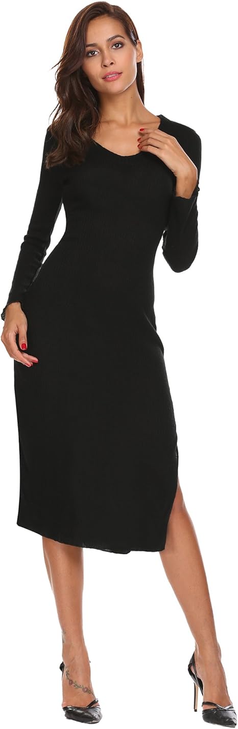 Hotouch Damen Kleid Elegant Etuikleid Enges Strickkleid Herbst Langarmkleid Schwarz S Amazon De Bekleidung