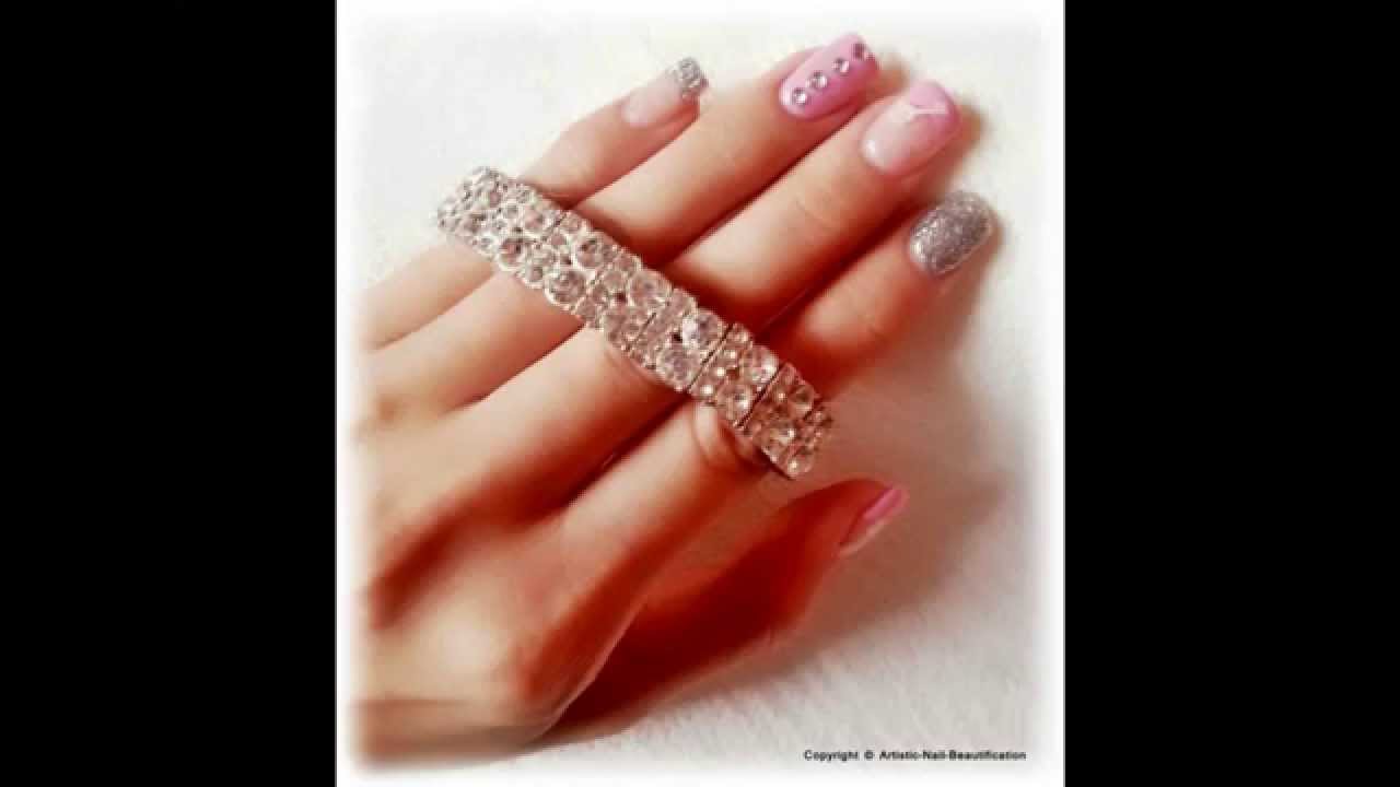 Nailart Mit Diamonds Uv Gel Handgemaltes Muster Youtube