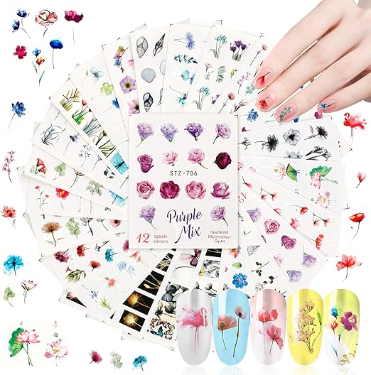 B Bangcool 24 Blatt Nail Art Aufkleber Elegant Floral Muster Nail Art Decals Nail Sticker Amazon De Kuche Haushalt