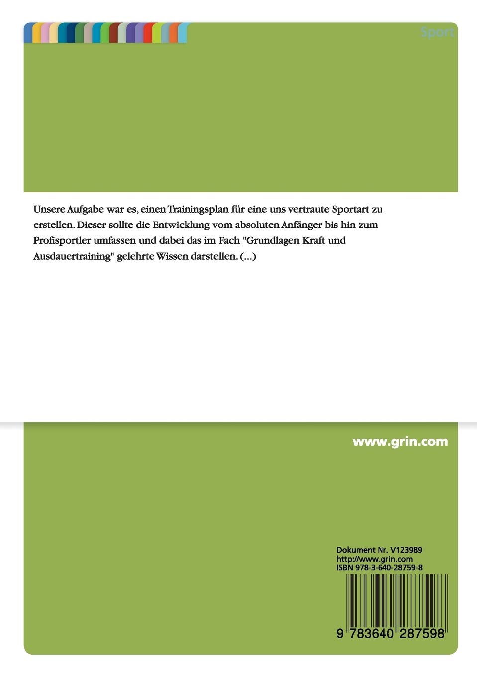 Trainingsplan und Alltag vereinen Integrieren Sie den Trainingsplan mit festen Zeiten in Ihren Alltag Das vermeidet Stress mit Familie und Freunden, und Sie können sich perfekt auf das Training konzentrieren 2 Essen checken Wer in zwölf Wochen topfit werden möchte, muss auf seine Nahrung achten Versuchen Sie, im Training auf PowerGels. Ein Trainingsplan ist nicht mehr als eine strukturelle Anordnung von Übungen mit angegebener Satz und Wiederholungszahl Dieser ist immer auf die Bedürfnisse der einzelnen Personen zugeschnitten und daher individuell für jeden zu erstellen Jeder profitiert von einem gut durchdachten Trainingsplan, allen voran allerdings Anfänger. Der richtige Ergometer Trainingsplan für Anfänger Um einen positiven Effekt zu erzielen und regelmäßig „am Ball zu bleiben“, ist es sinnvoll sich einen Ergometer Trainingsplan für Anfänger zu erstellen.