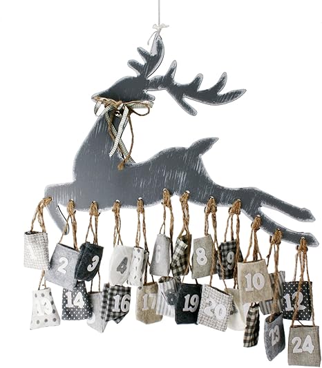 Roomando Adventskalender Rentier Aus Holz Mit 24 Jute Sackchen Zum Aufhangen Inkl Aufhangeset Amazon De Kuche Haushalt