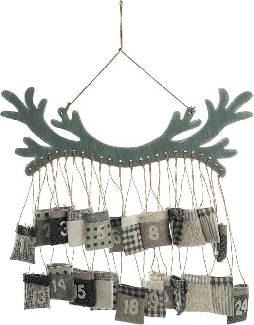 Amazon De Festive Productions Zum Aufhangen Holz Antler Adventskalender Mit Taschen Mehrfarbig