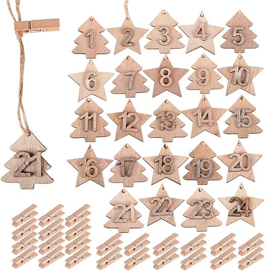 24 Pcs Adventskalender Zahlen Holz Hanger Deko Weihnachten Holz Klammern Mini Holz s Mit Juteschnur Anhanger Fur Diy Handwerk Verzierungen Geschenk Verpackung Papier Tuten Beute Weihnachten Amazon De Kuche Haushalt