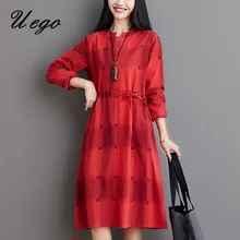 Tyoby Damen Sommer Blusen Kleid Leinen Baumwolle Lang Rock Frau Freizeit Stehkragen Ruschen Gerader Rock Umstandskleidung Damen