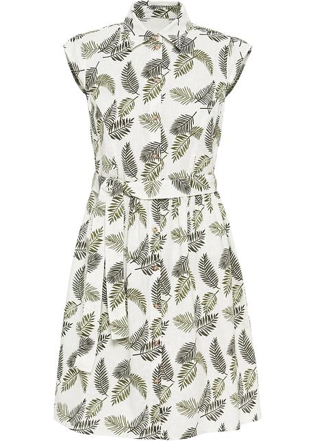 Bedrucktes Leinen Blusenkleid Wollweiss Dunkelgrun Olivgrun Gemustert Bodyflirt Bonprix De