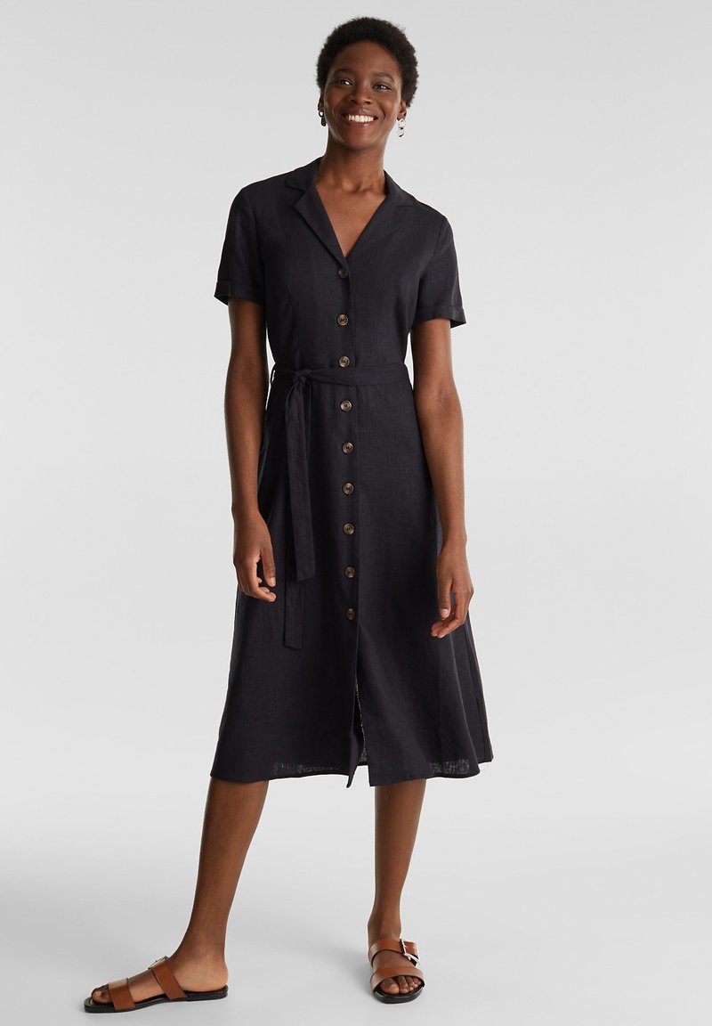 Esprit Aus Leinen Mix Hemdblusen Kleid Blusenkleid Black Schwarz Zalando De
