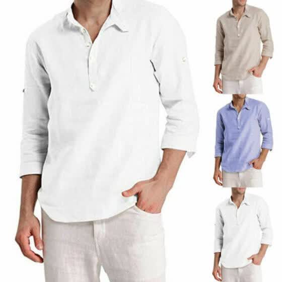 Shop Herren Baumwolle Leinen Langarm Solid Shirts Casual Bluse Kleid Soft Tops Tee Online From Best Babywear On Jd Com Global Site Joybuy Com