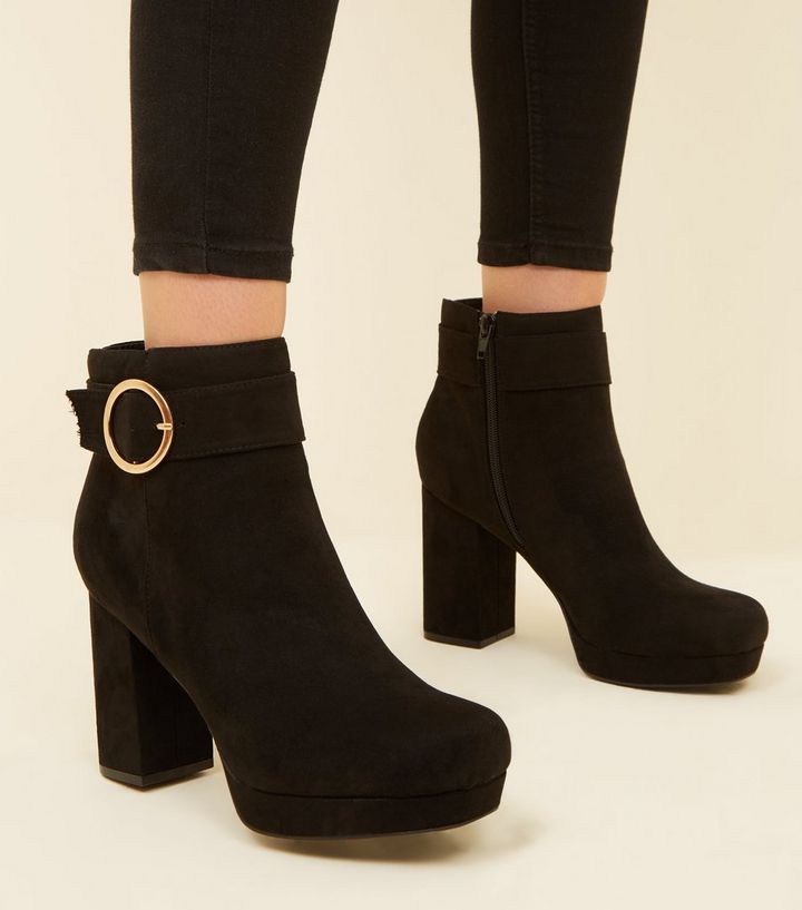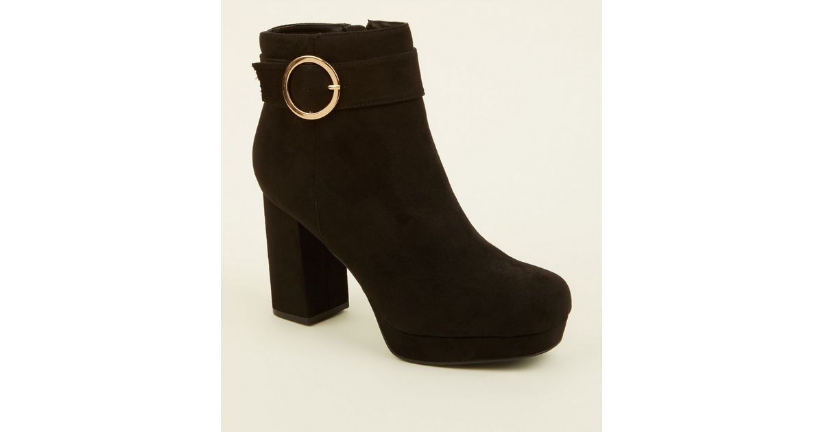 Schwarze Stiefel Mit Plateausohle Und Riemchen Mit Ringschliesse New Look