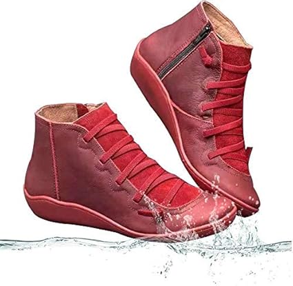 Belukies Kunstleder Stiefeletten Herbst Vintage Schnurschuhe Damen Bequeme Flache Fersenstiefel Reissverschluss Kurzer Boot Grosse 35 43 Weiss 36 Amazon De Sport Freizeit