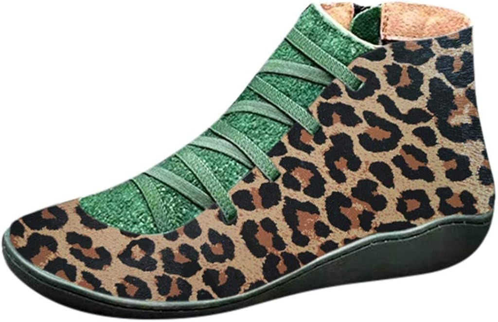 Stiefeletten Damen Kudico Western Kunstleder Frauen Flache Fersenstiefel Herbst Winter Bequeme Schnurschuhe Reissverschluss Schuhe Kurzer Boot Stiefel