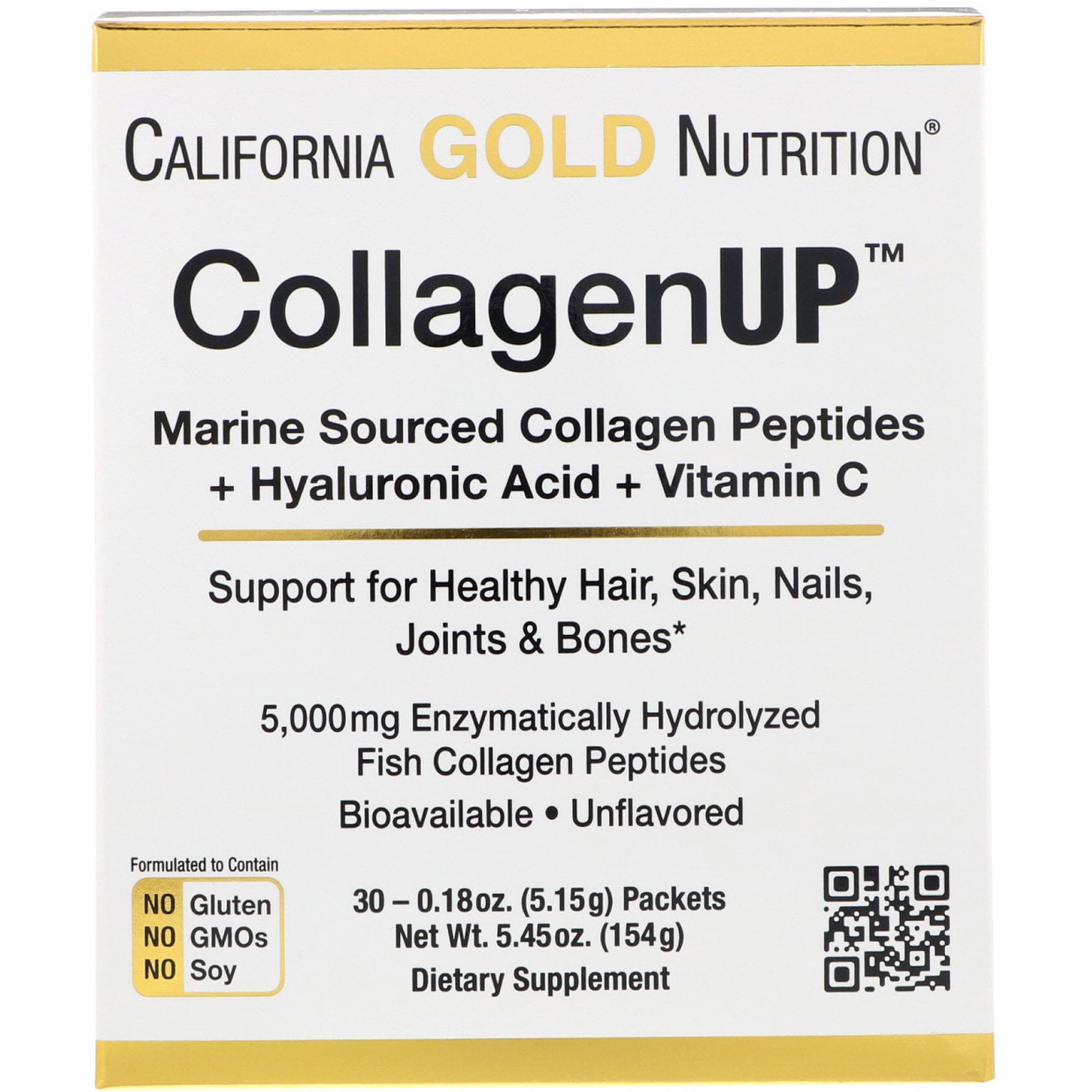 California Gold Nutrition Collagenup Marine Hydrolyzed Collagen Hyaluronic Acid Vitamin C Unflavored 30 Packets 0 18 Oz 5 15 G Each Walmart Com Walmart Com