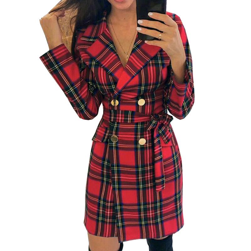 Starne Herbst Und Winter Damen Rot Kariertes Kleid Langarmelige Freizeitkleidung Business Kleid Revers Zweireihig Amazon De Bekleidung