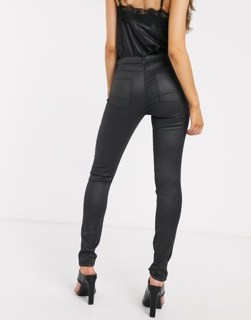 Allsaints Eu Womens Alex High Rise Coated Superstretch Skinny Jeans Black Black