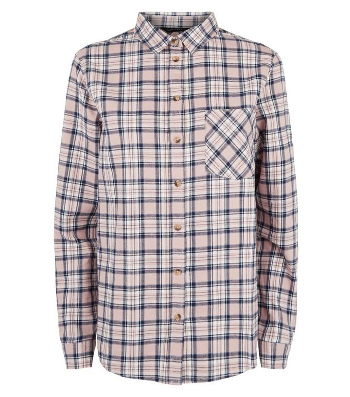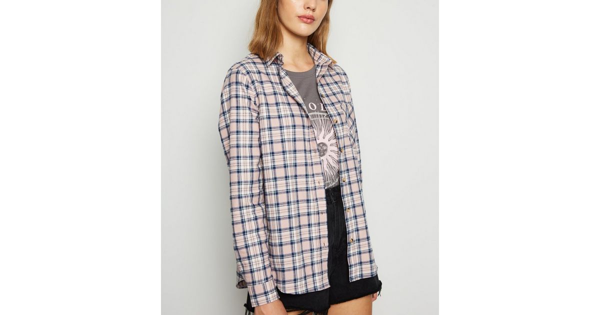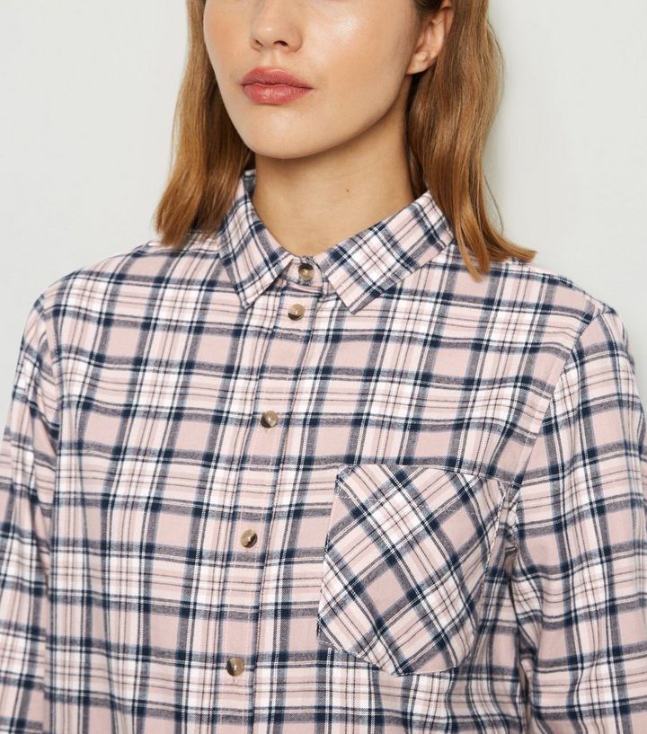 Kariertes Langarmliges Hemd In Rosa New Look