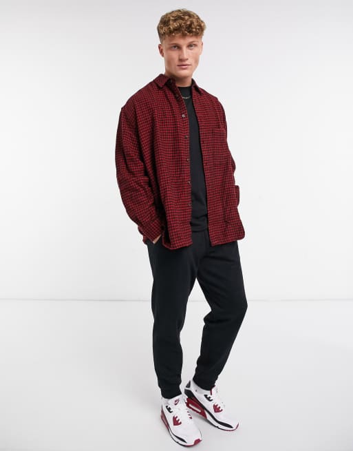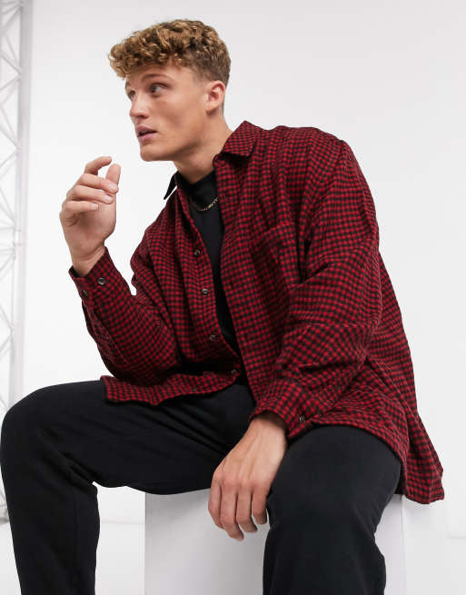 Asos Design Weites Oversize Karohemd Mit Hohem Wollanteil Und Hahnentrittmuster In Rot Und Schwarz Asos