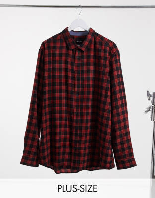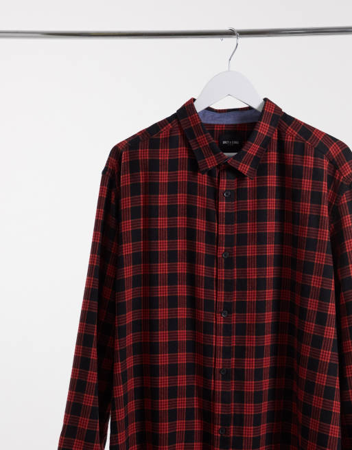 Only Sons Plus Geburstetes Karohemd In Schwarz Rot Asos