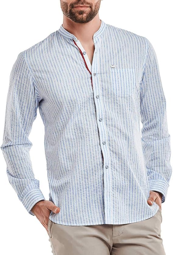 Youthup Herren Hemd Freizeit Slim Fit Langarmshirt Weiss Und Blau Meliert Gemustert Mit Den Knopfen Amazon De Bekleidung
