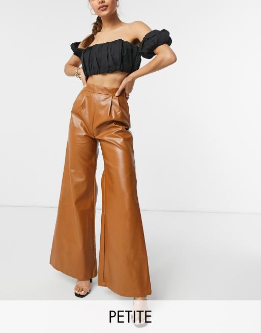 Naanaa Petite Weit Geschnittene Hose Aus Hellbraunem Kunstleder Evesham Nj